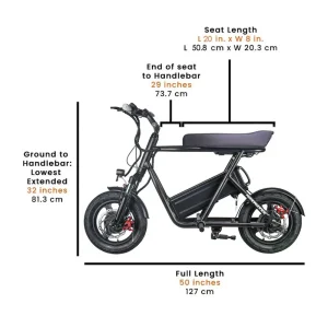 Together, the 350W front motor (720W peak) and 500W rear motor (960W peak) effortlessly power you to 20 mph out of the box.