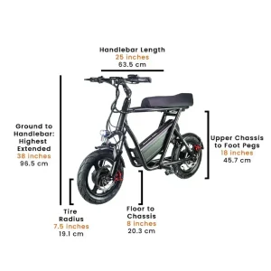 Twin encapsulated spring shocks at the front of the RoadRunner combined with its big 14” tires soak up rough terrain when riding on street or trail.