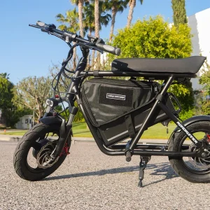 Turn your EMOVE RoadRunner into an SUV — a scooter utility vehicle — with this new EMOVE Roadrunner center pizza bag. Built with velcro straps, durable 1680D ballistic nylon fabric and a large zippered compartment, this center bag is water repellent and built to last.