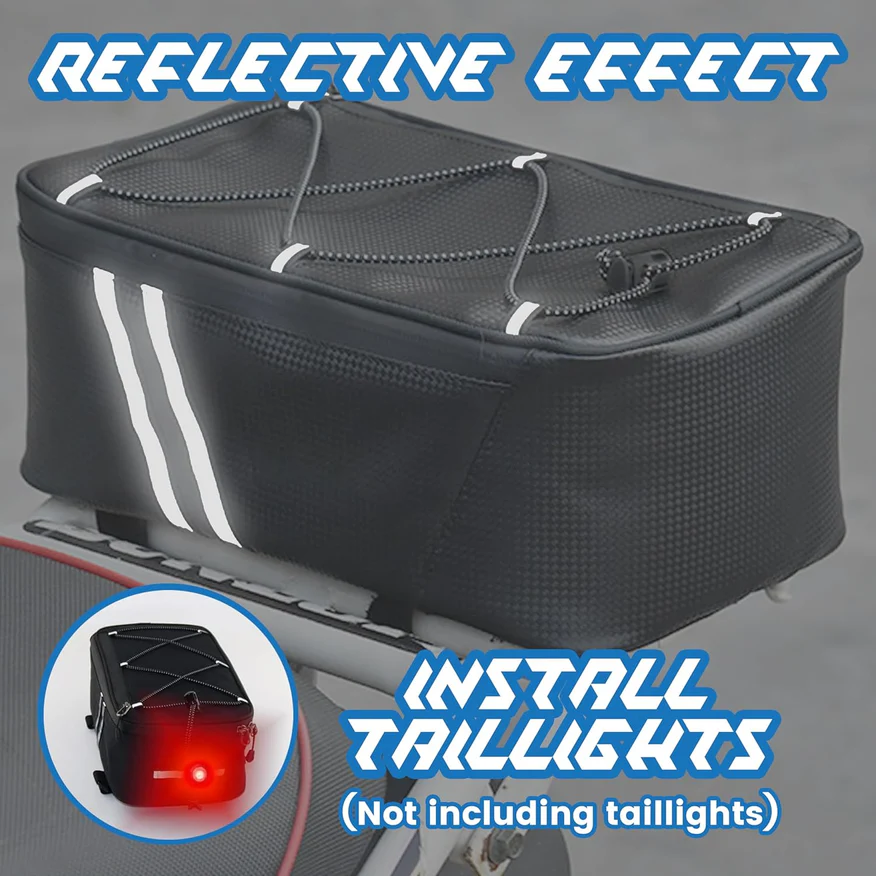 - WATER RESISTANT & STURDY: The bicycle rack bag is made of PU leather & polyester, which is durable, water repellent and easy to clean. It even comes with rain cover that completely helps protect the trunk and the stuffs in it from dirt, sand, water, rain and snow.