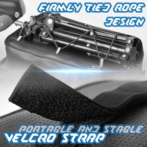 - EASY TO INSTALL: This trunk attaches easily to the rear bike/e-bike rack with 2 velcro straps; Interior equipped with thin PE foam for better protecting the gears in the bag. It could collapse flat when you don’t use it.